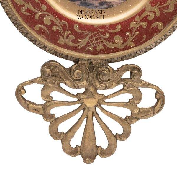 Vintage ornate gold frame with landscape painting on red background featuring trees and river decorative antique wall art