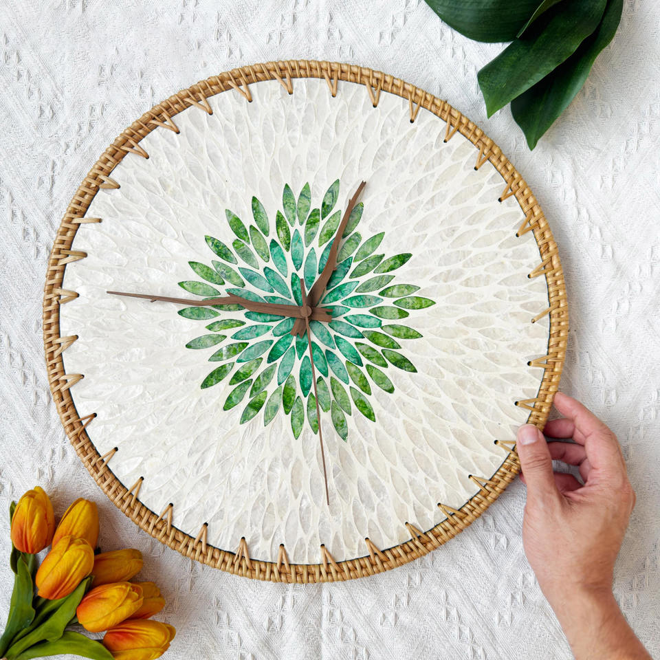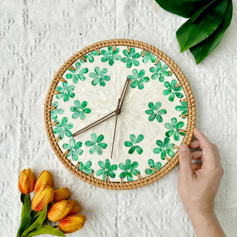 Vintage rattan clock with floral pattern design excellent quality hand-weave clocks low cost