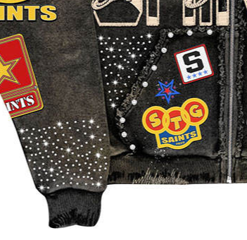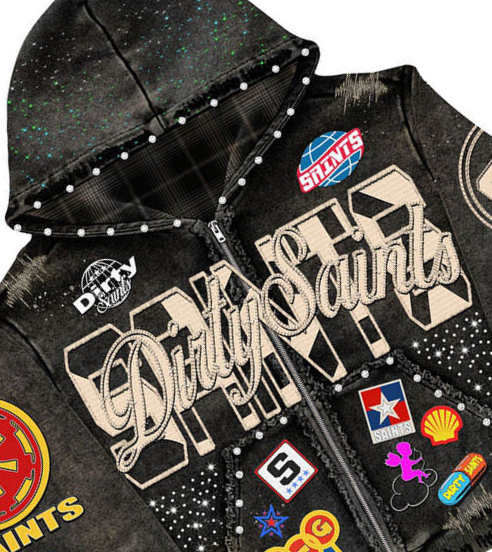 Vintage style Washed Distress Embroidery Patchwork Hoodie Men Oversized Heavyweight 100% Cotton Rhinestone Zipper Hoodie