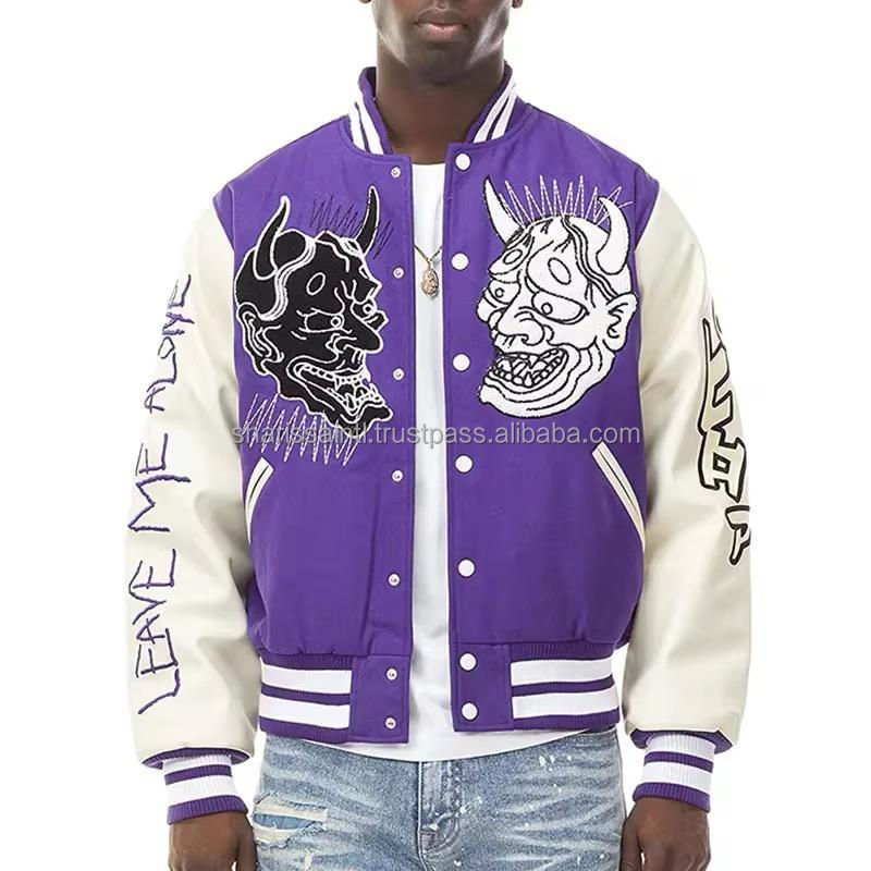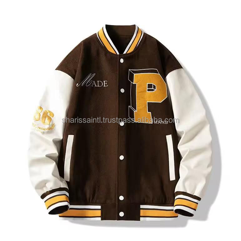 Vintage varsity jacket oversized letterman bomber coat unisex retro style outerwear for school and parties Private Label