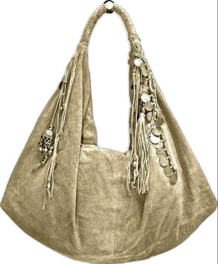 Vintages Printed Stripes Zipper-Closer Cotton Lined Handbags Canvas Totes Shoppers Gift Bags with Fringes Wholesale