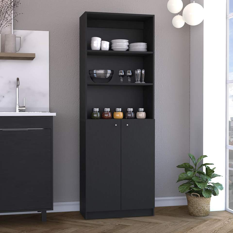 Vinton 2-Door Melamine Bookcase with Upper Shelves Black Living Room Furniture for Home Office & School Use DB DEPOT E-SHOP