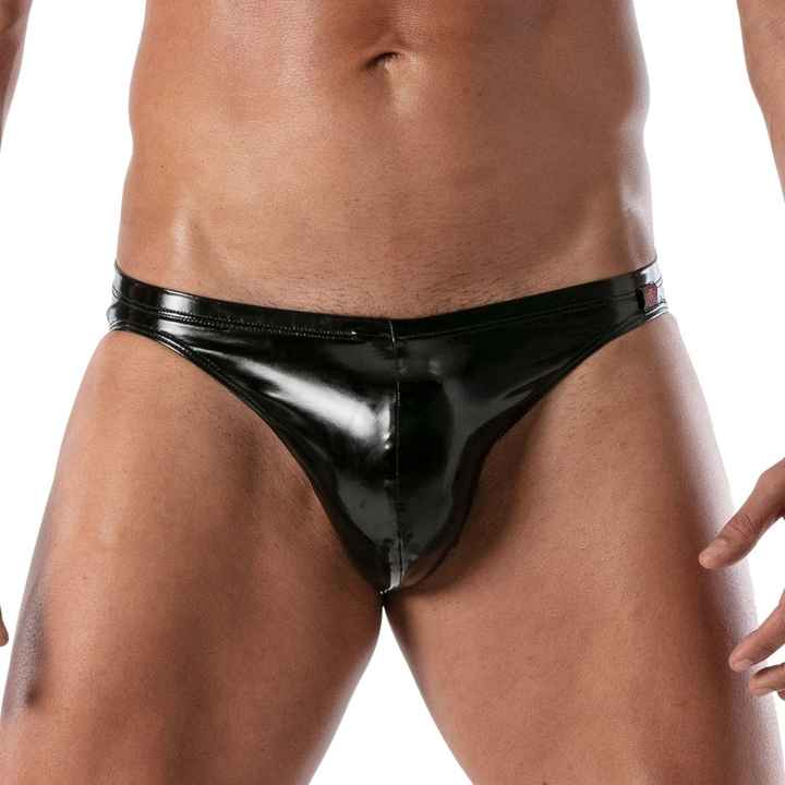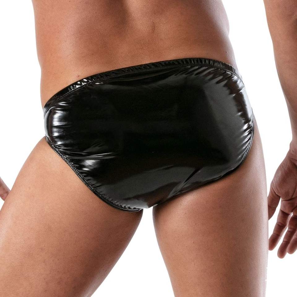 Vinyl Zipped Bikini Red Mens Fetish Clubwear Glossy Slim Fit Underwear