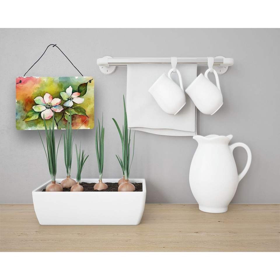 Virginia American Dogwood Watercolor Wall Decor New 8HX12W Multicolor Aluminum Metal Door Hanging Prints Bathroom Plaque for