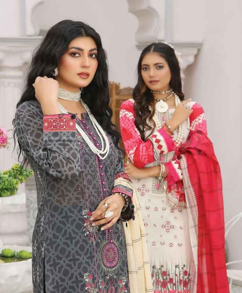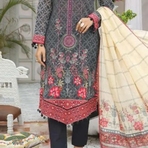 Women's Summer Collection 3-Piece Viscose Lawn Suits Pakistani Designers' Digital Print Dresses with Lace Button Decor Washable