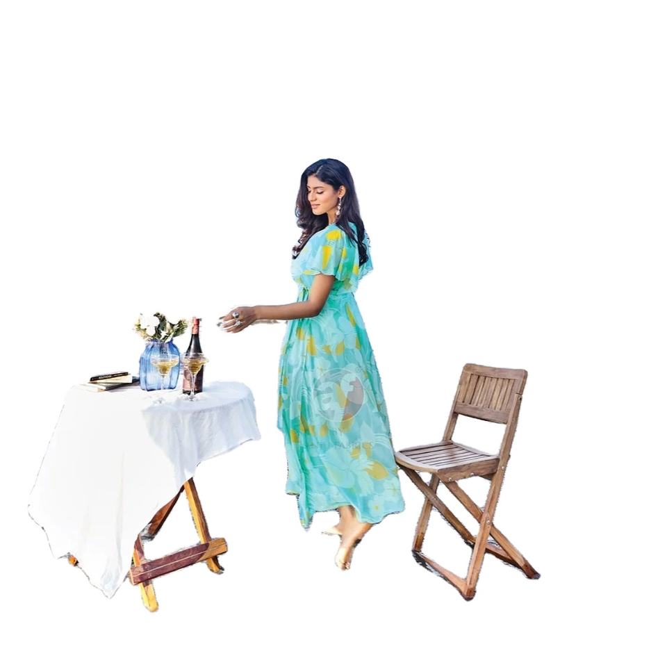 Viscose Premium Chiffon with Digital Prints with Fancy Brooch One Piece Dress