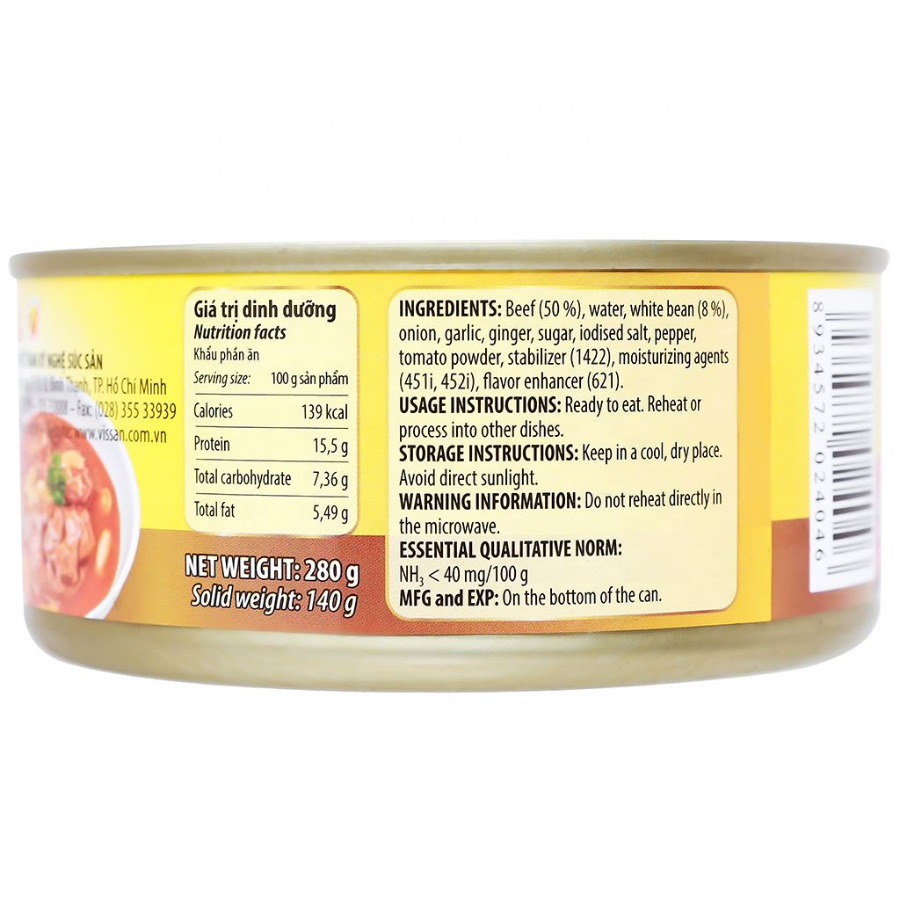 Vissan Beef Cooked with Beans 280g Convenience for Life, Wholesale Canned Food with Best Price From Vietnam