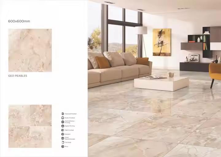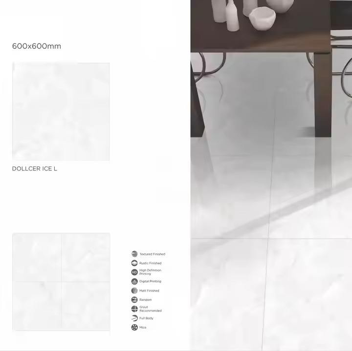 Vistaar 600x600mm Glossy Ice Light Design Porcelain Flooring Tiles 24x24 Inch PGVT Marble 9mm Thickness 2x2 Ceramic Floor Tiles