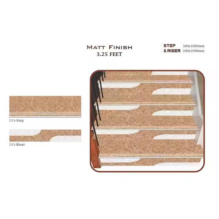 Vistaar Best Price GVT Porcelain Step 300x1000mm Riser 200x1000mm Non Slip Tiles 10mm Export