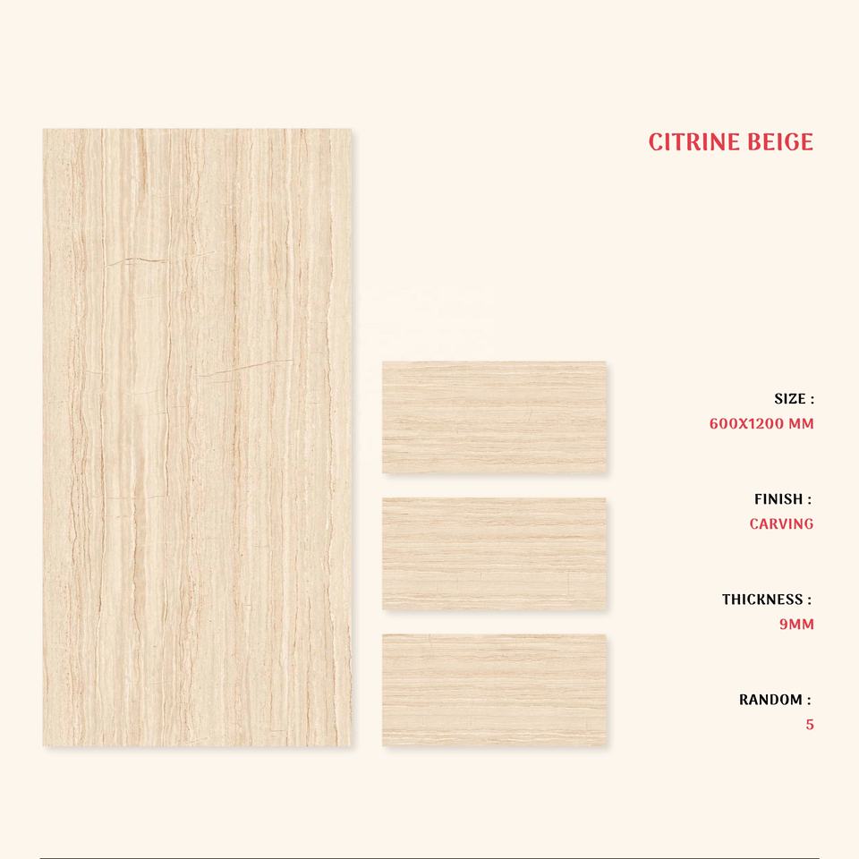 Vistaar Citrine Beige 600x1200mm Carving Porcelain Floor Wall Tiles Full Body
