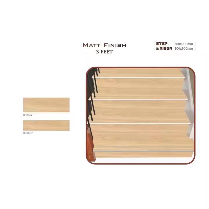 Vistaar Luxury Porcelain 10mm Floor Tiles Matt Finish GVT Non-Slip Step Riser 300x900mm Tread for Outdoor Hall Bathroom