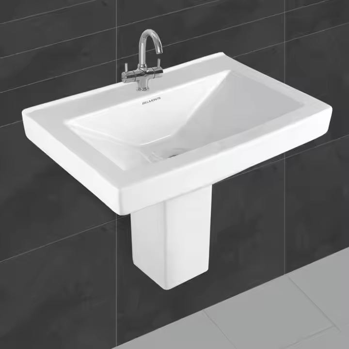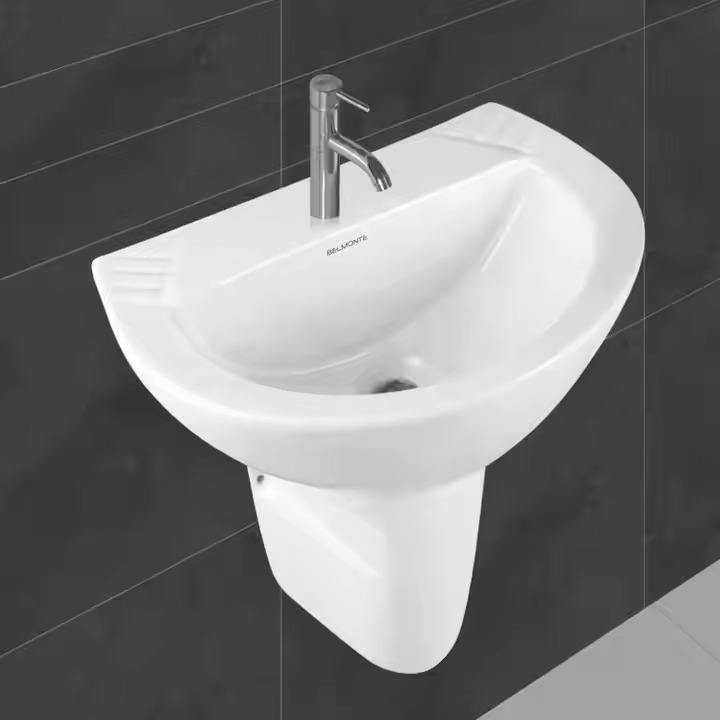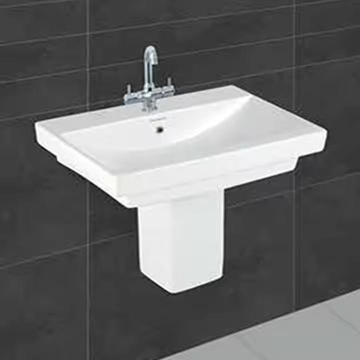 Vistaar Sofia White Ceramic Half Pedestal Wash Basin Lavabo Sink Set Designer Pottery Art Morbi India Export