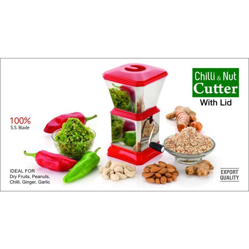 Vistaar Stainless Steel With Plastic Square Kitchen Multipurpose Vegetable & Fruit Onion, Chilly Cutter Chopper Multicolor