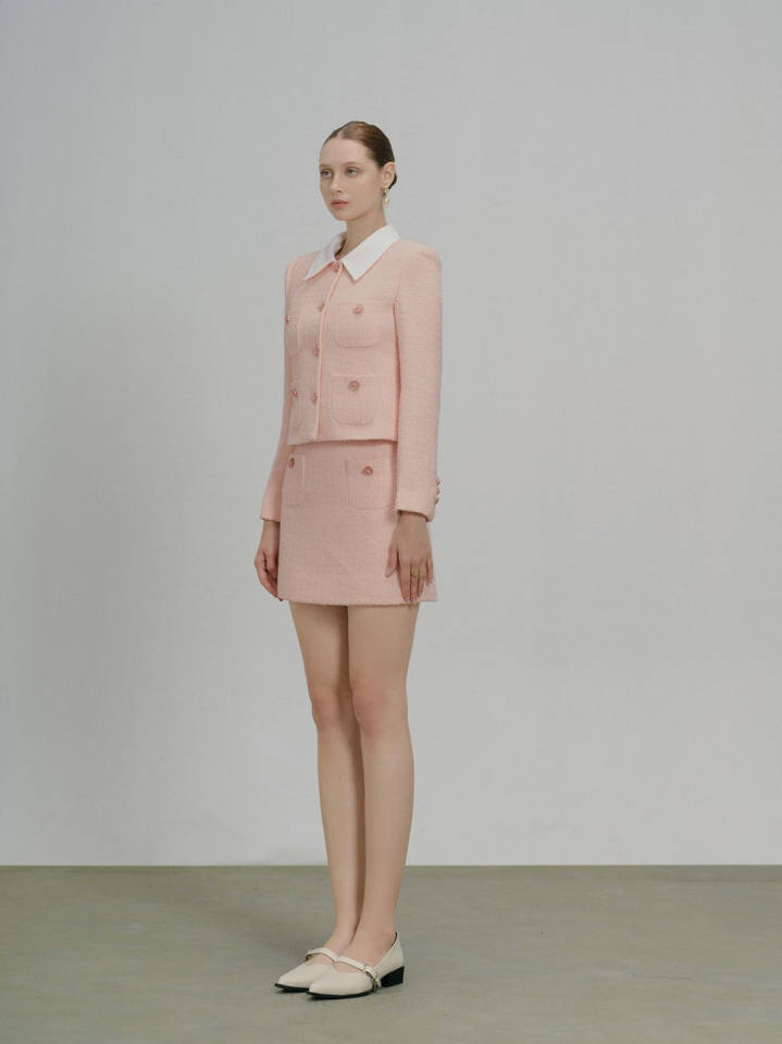 Color:Body Shirt is coral (70% pink + 30% orange), Collar is white
