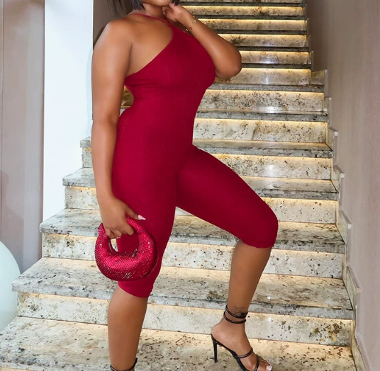 Viviblook C25JP212 Women's New Solid Color Casual Slim Fit Halter Strap Backless Sleeveless Casual Jumpsuits for Ladies Bodycon