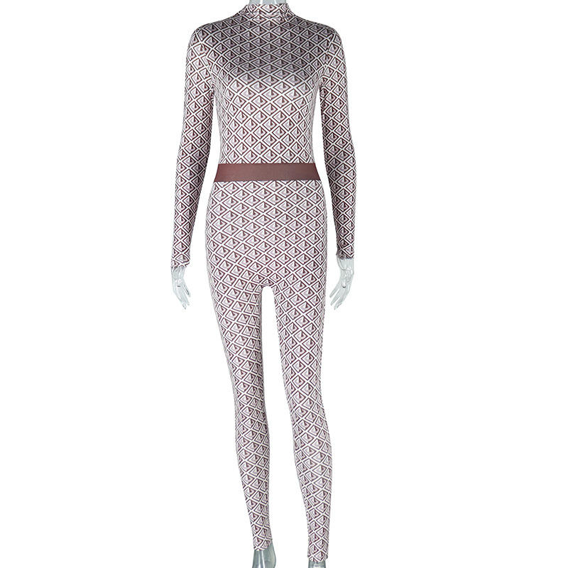 Viviblook C325JP Sexy Party Club Plaid Print Jumpsuits Fashion Bodycon Yoga Wear Women's Fitness Workout Jumpsuit