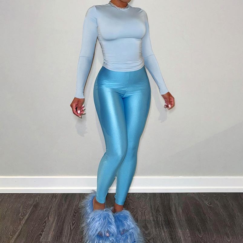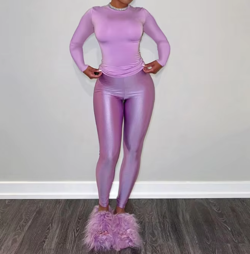 Viviblook D24ST595 2025 New Women O Neck Long Sleeve High Waist Slimming Pants Casual Set Sports Outfits for Women 2 Piece Set