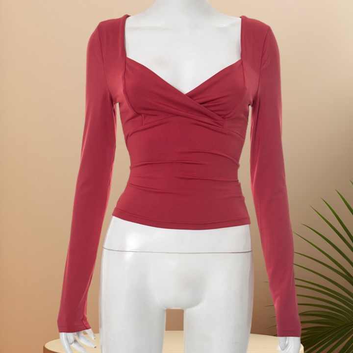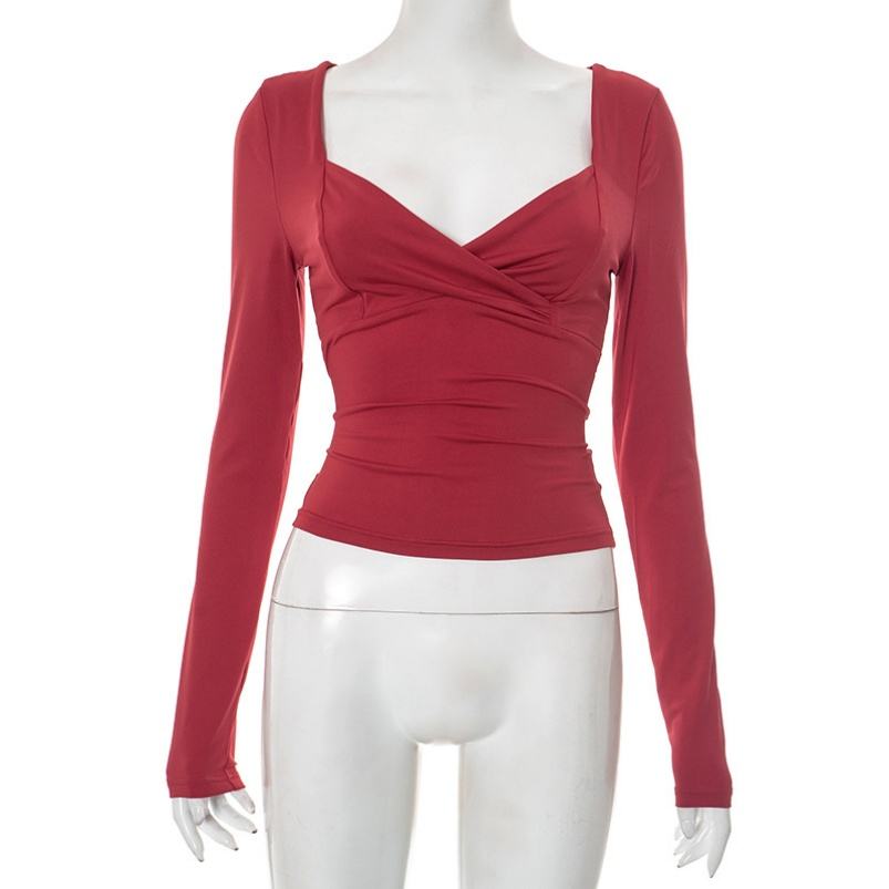 Viviblook D25TP270 Y2K Vintage 2025 New Autumn New Solid Color Long Sleeves Cross Slimming Sexy T-shirt Crop Top for Women