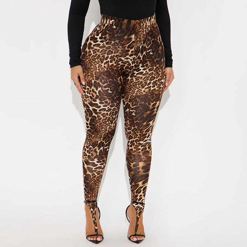 Viviblook J25PT470 Women's Casual Pants Slim Fit Sexy Hot Girl High Waist Leopard Print Leggings