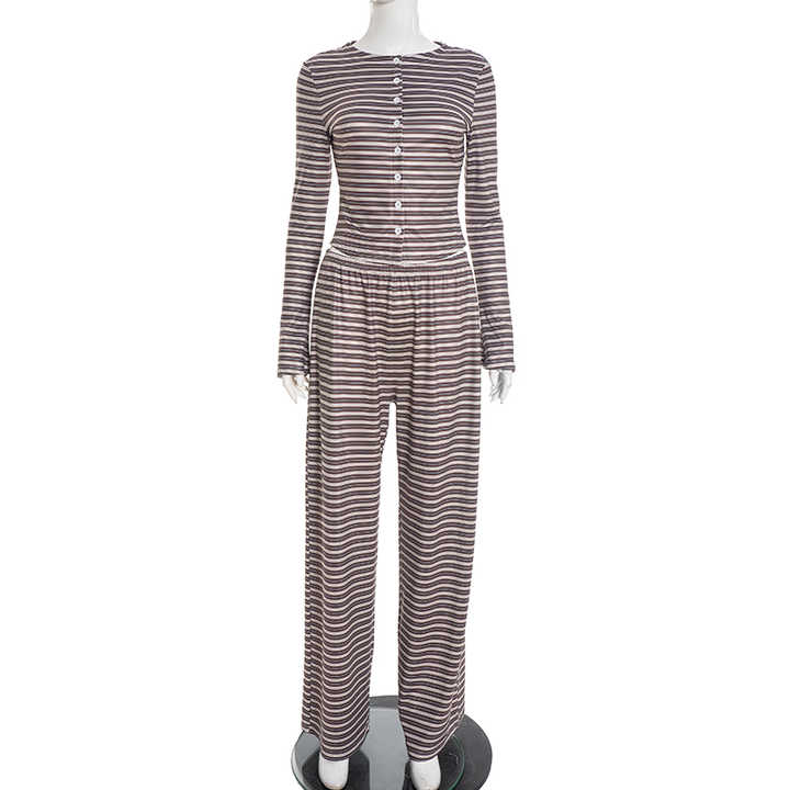 Viviblook Q25ST393 Women's Casual Suit Striped Long Sleeved Top Long Pants Two-Piece Set