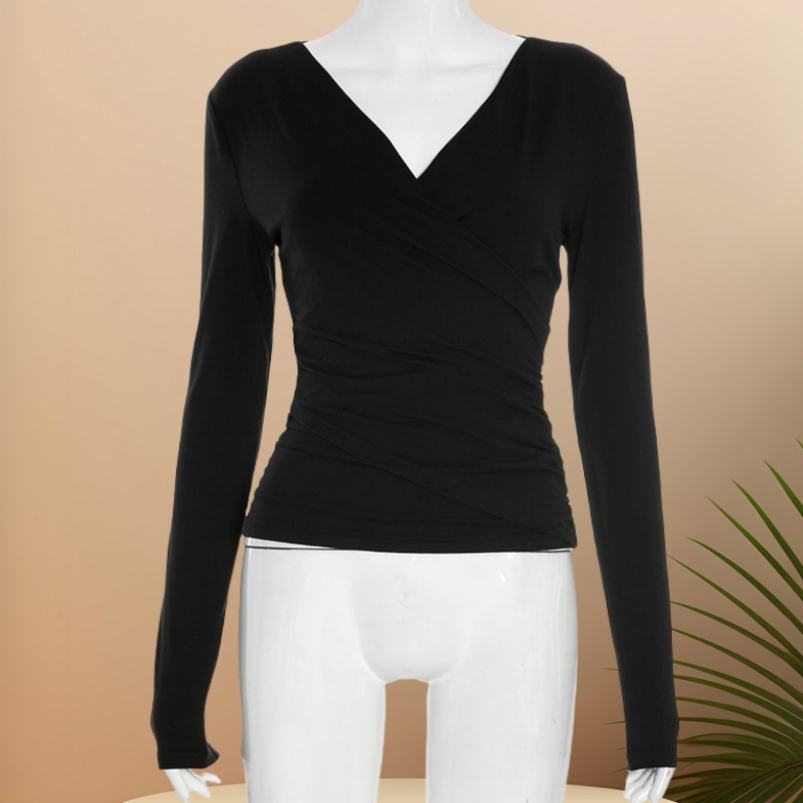 Viviblook Y25TP348 Ladies Autumn Outfits Sexy New Solid Color V-neck Long Sleeved T-shirt Top for Women