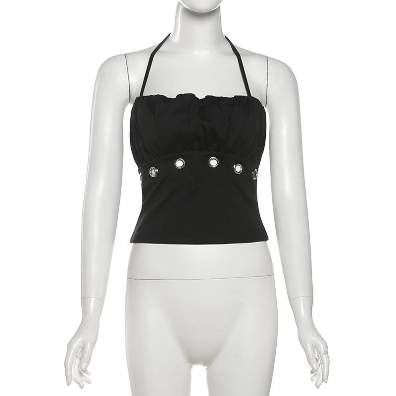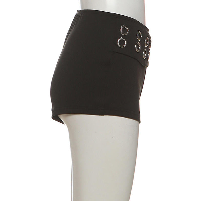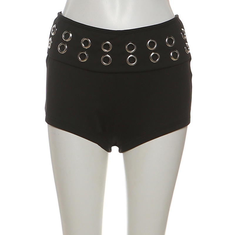 Viviblook Z0112ST02 Women Summer Set Solid Color Punk Metal Ring Strapless Top Shorts Two Piece Set