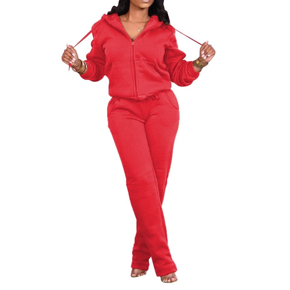 Viviblook Z1121ST03 Women's Set Autumn Winter Velvet Solid Color Zipper Hoodie Cardigan Jacket Sports Pants Plus Size Set