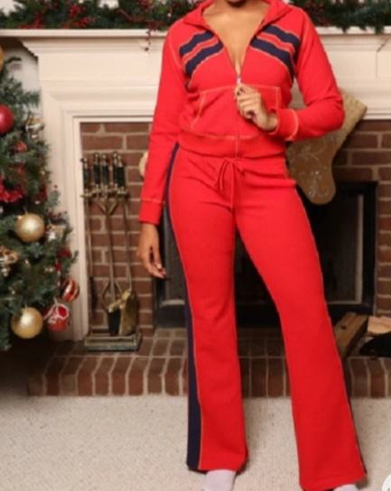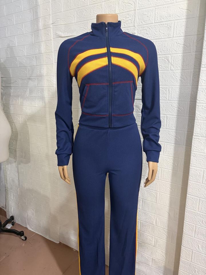 Viviblook Z1211ST02 Women New Casual Sportswear Set Zipper Cardigan Jacket Color Blocking Drawstring Long Pants Two Piece Set
