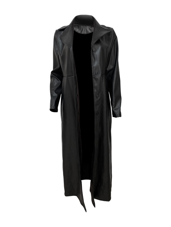 Viviblook Z1213TP Women'S Street Cardigan Lapel Buttons Warm Long Leather Jacket Coats For Ladies