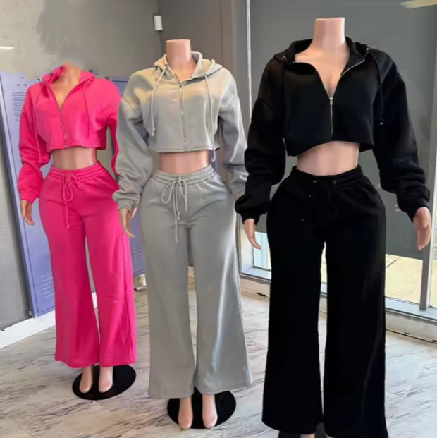 Viviblook Z1217ST01 Women Sweatpants Suit Long Sleeved Zipper Cardigan Sweatshirt Sports Casual Drawstring Pants Two Piece Set