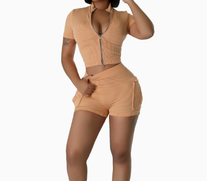 Viviblook Z426ST02 Women Tracksuit Sexy Fashion Zipper Short Sleeved Top Shorts 2-Piece Set Sports Suit Yoga Set