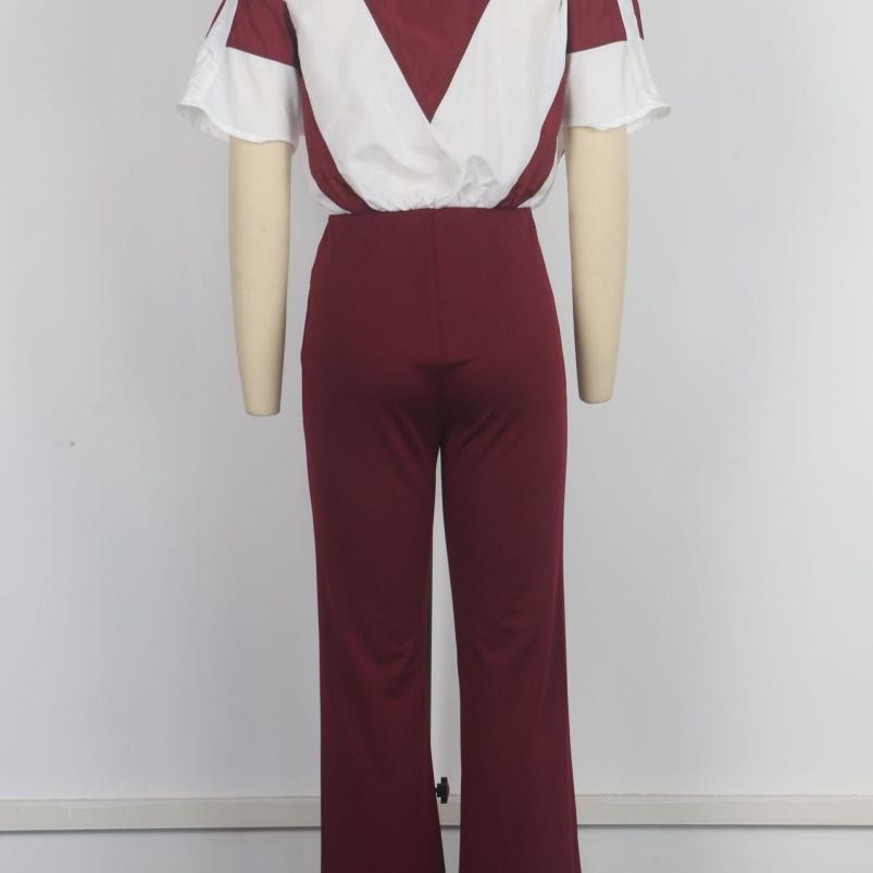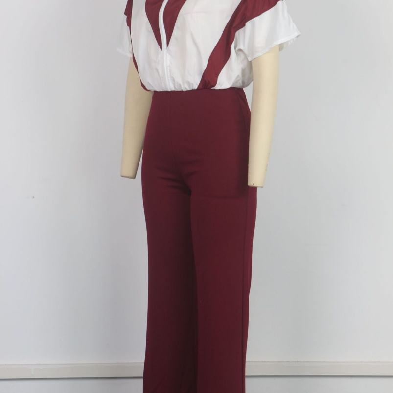 Viviblook Z509JP01 Women's Summer Sports Fitness Zipper Short Sleeves Patchwork Casual Jumpsuit Bodycon