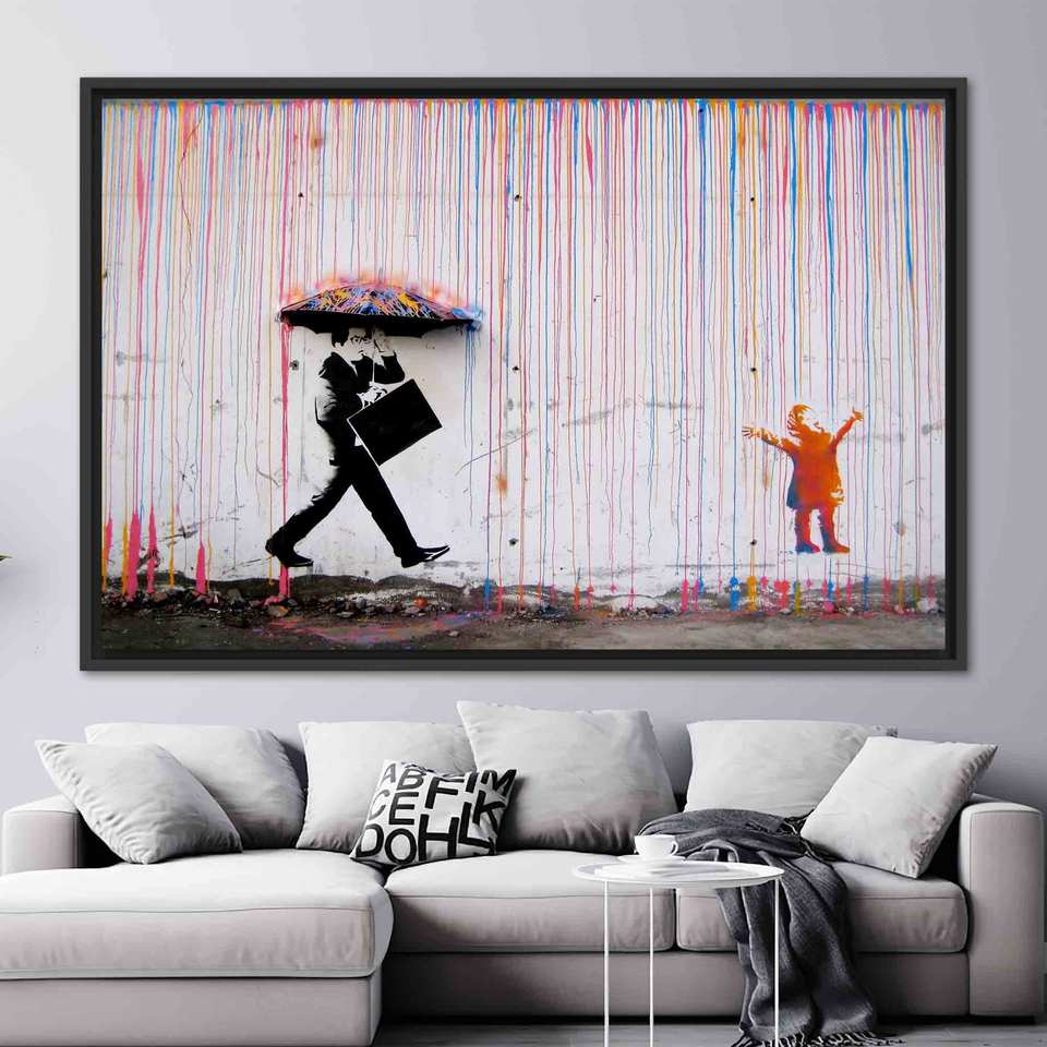 Vivid Graffiti Printed Canvas: Urban Street Art Rain Poster,1P:Black Framed