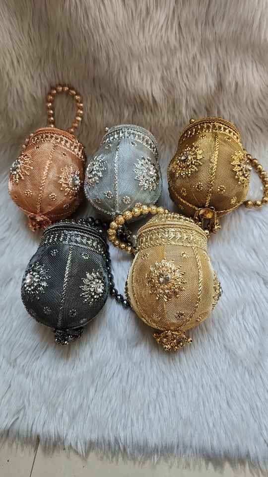 Vivid Women's Metal Beaded Clutch Kiss Lock Closure Custom Design Single Strap Carry Silk Lining Lightweight Stylish Bridal