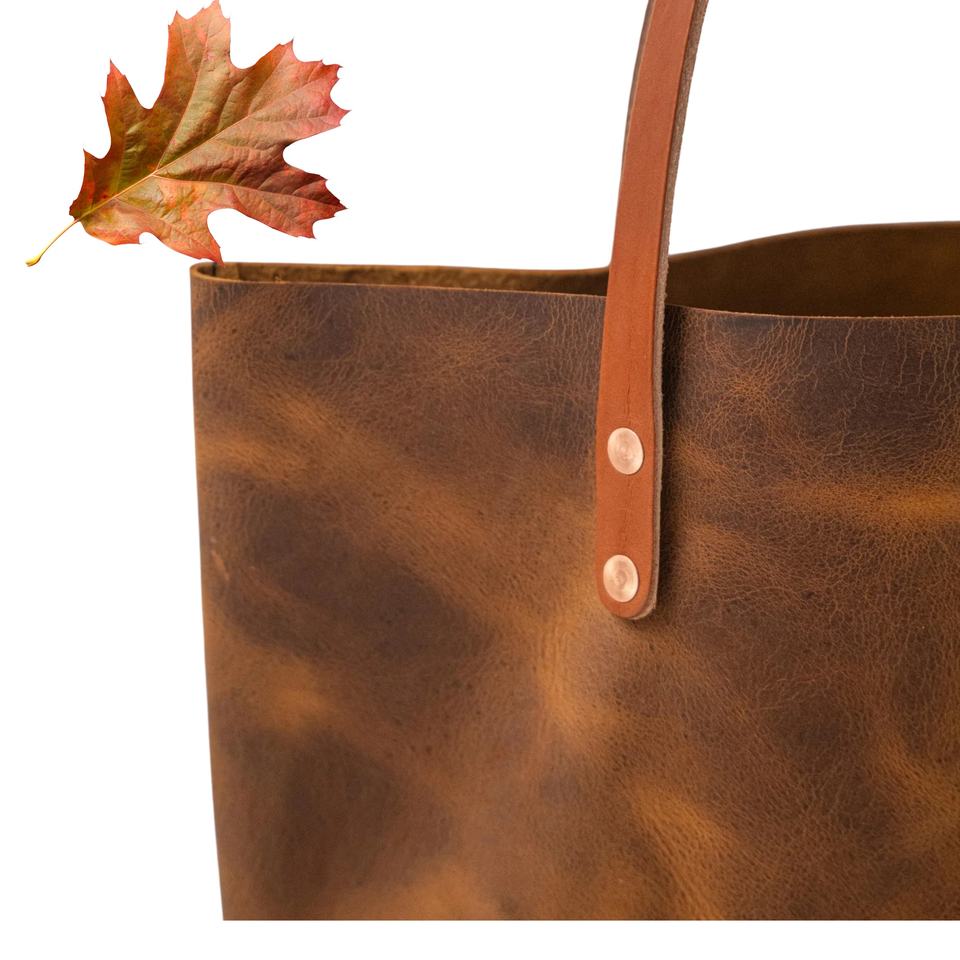 Vizenta Brown Leather Foldable Tote Shopping Bag with Shoulder Strap 1134g Made in Pakistan