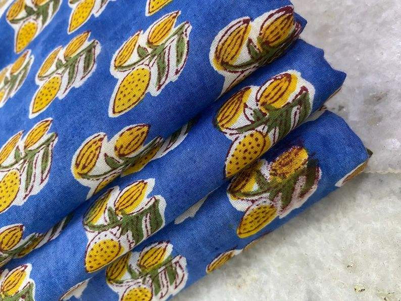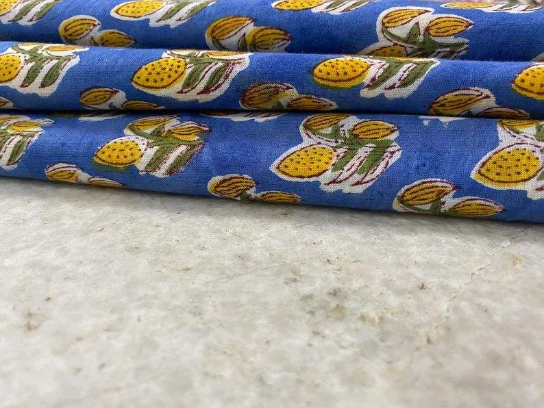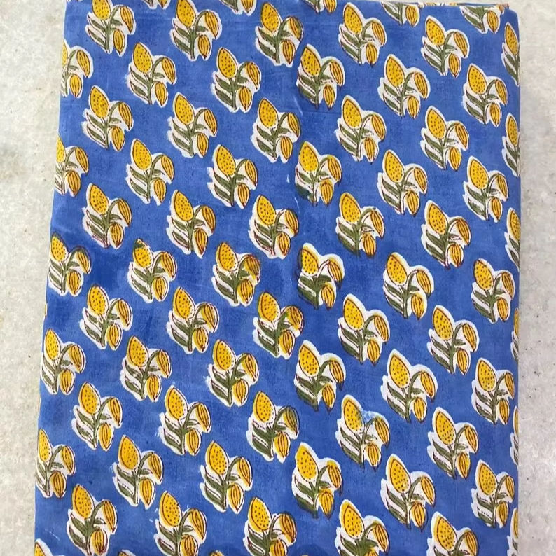 Voile Handmade Floral Printed Nomex Cotton Fabric Indian Hand Block Print for Girls' Knitted Running Dresses with Floral Design