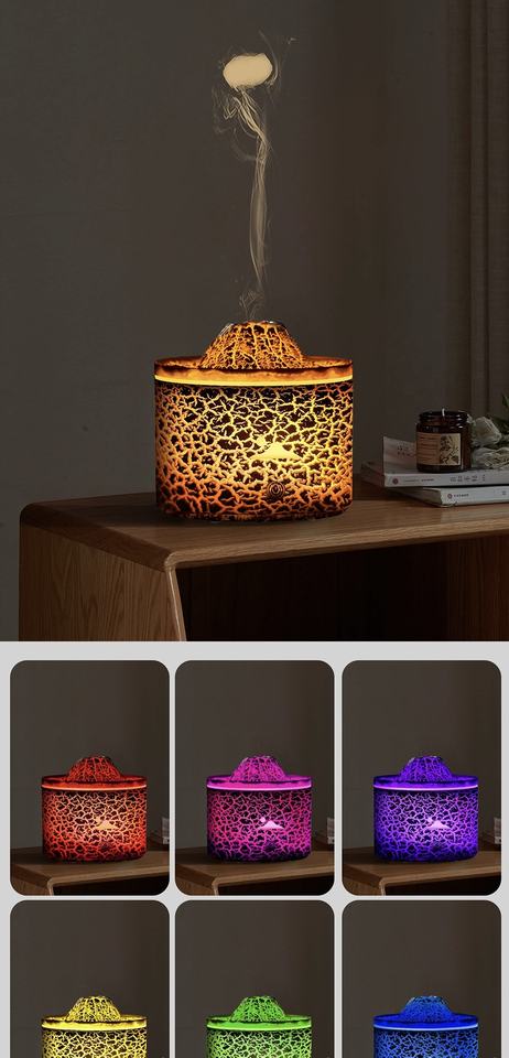 Volcano Aroma Diffuser, Jellyfish Mist Humidifier with 7-Color Flame Light, Timer, Low Noise, Home & Office Use