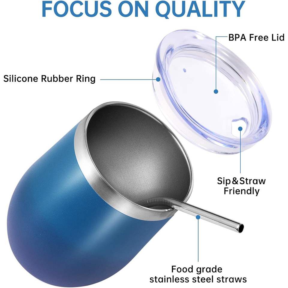 Stainless Steel Vacuum Tumbler 12oz Reusable With Lid And Straw Assorted Colors For Travel Outdoor Camping Wine