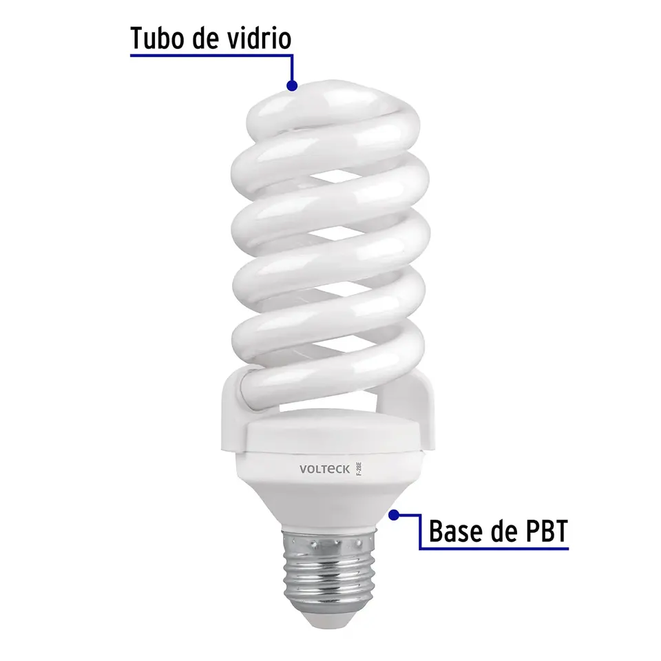 Volteck 28W Daylight Spiral T4 Fluorescent Lamp Box of 8 Energy Saving Glass Lamps in Blister Pack