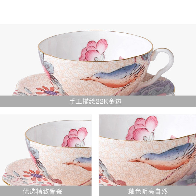 W Home Rhododendron Series Bone China Coffee Cup Garden Style Afternoon Teacup 4-piece Gift Box Set
