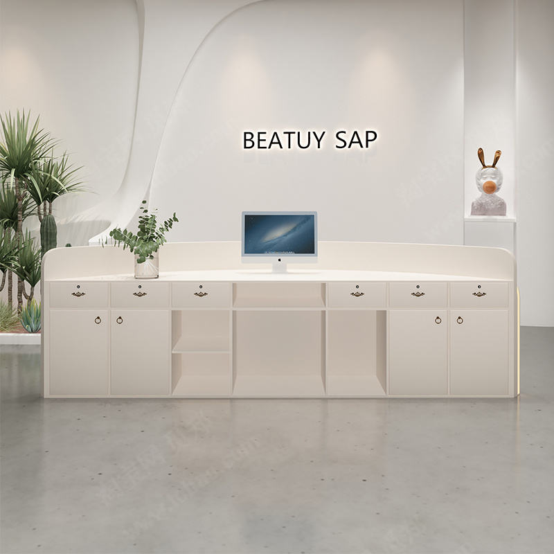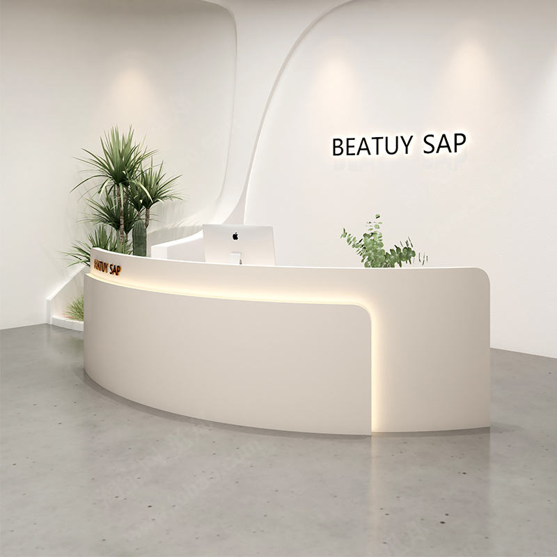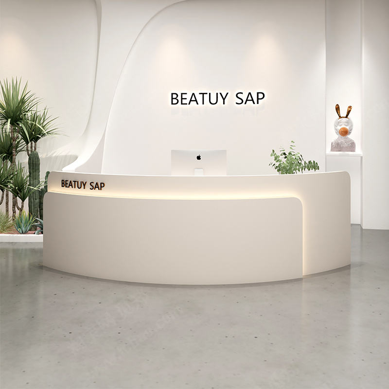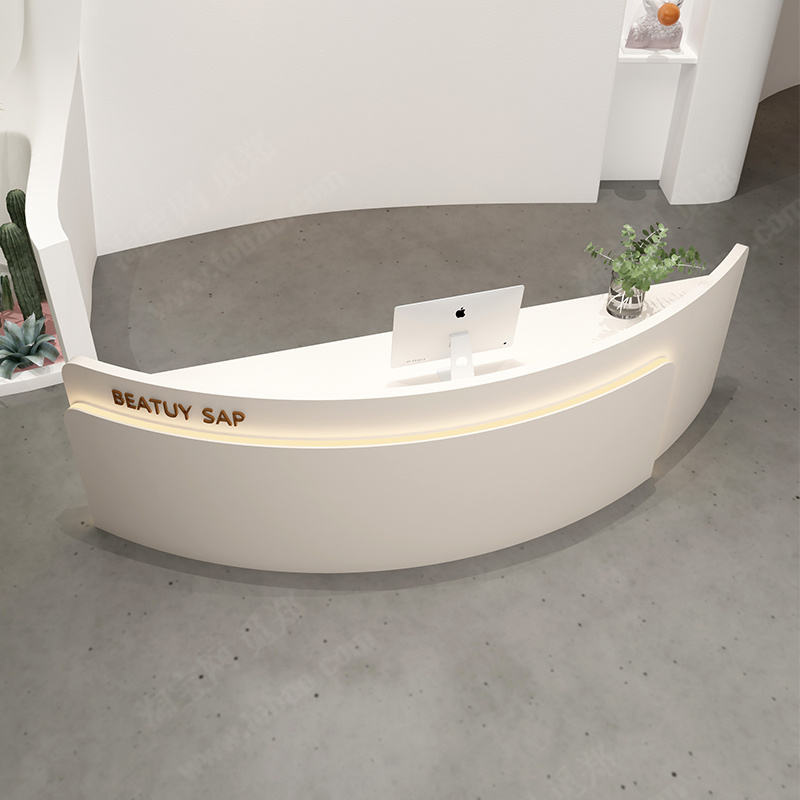 W002 Integrated LED Lights Arc-shaped Beauty Salon Bar Cashier Counter Hair Salon Clothing Store Company Reception Desk Counter
