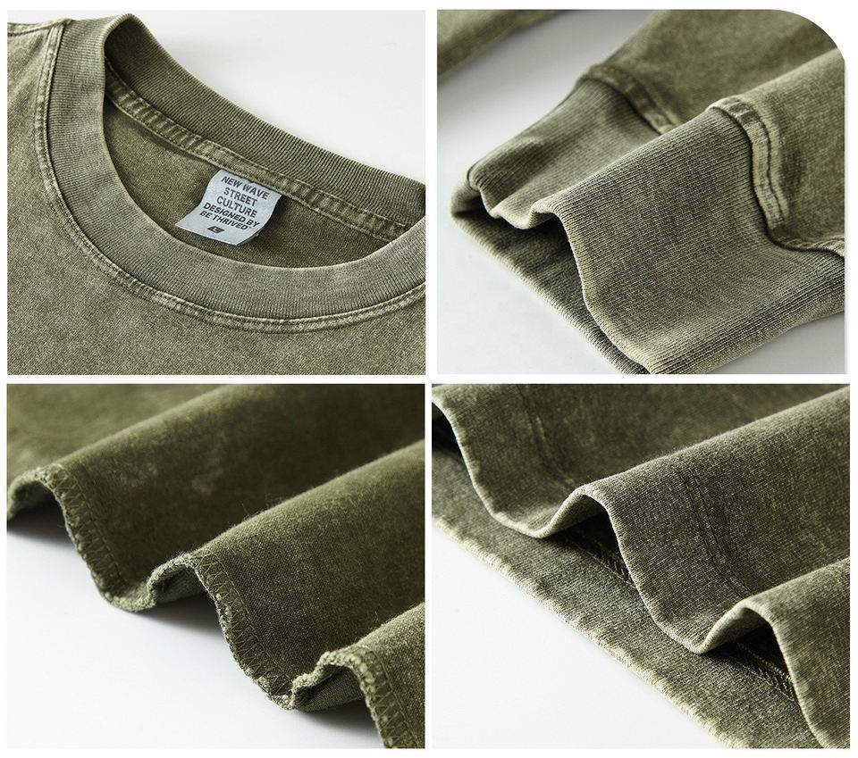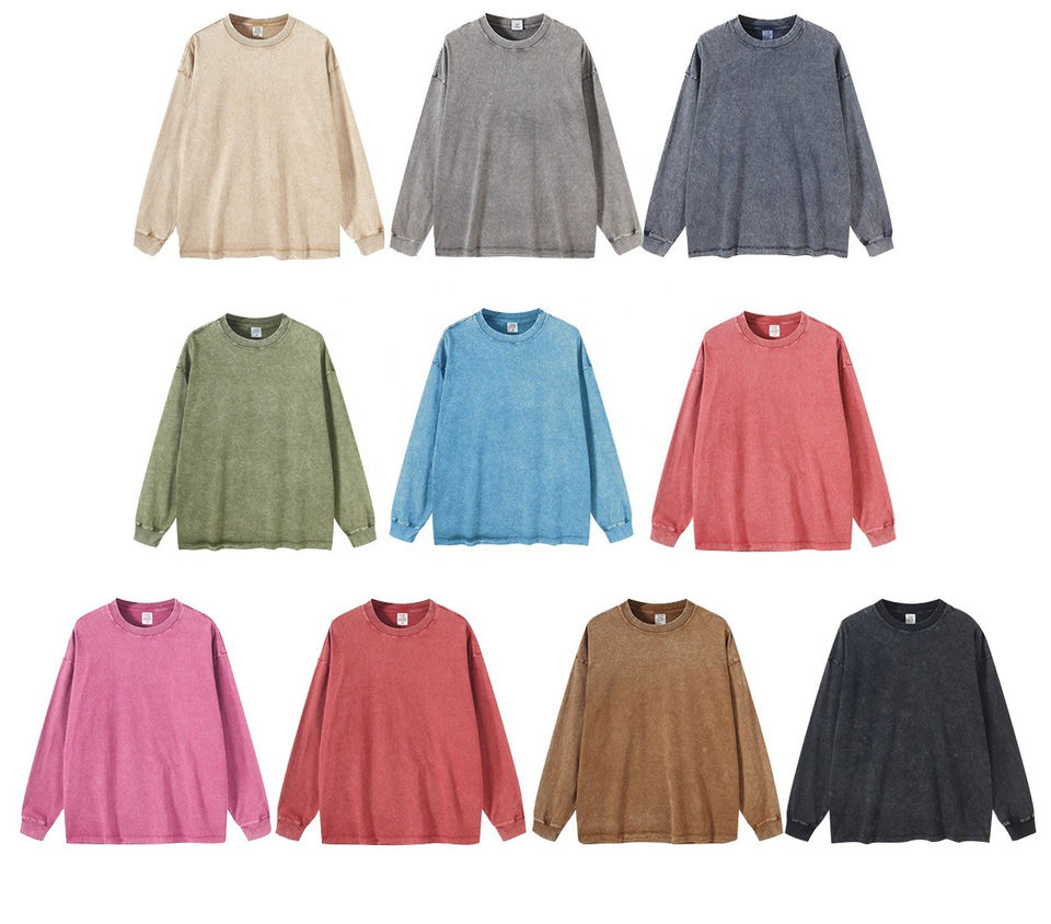 W0156 270 Gsm 100% Cotton Long Sleeve Shirt Men Acid Washed Custom Men's Heavy Vintage Long-sleeved T-shirt