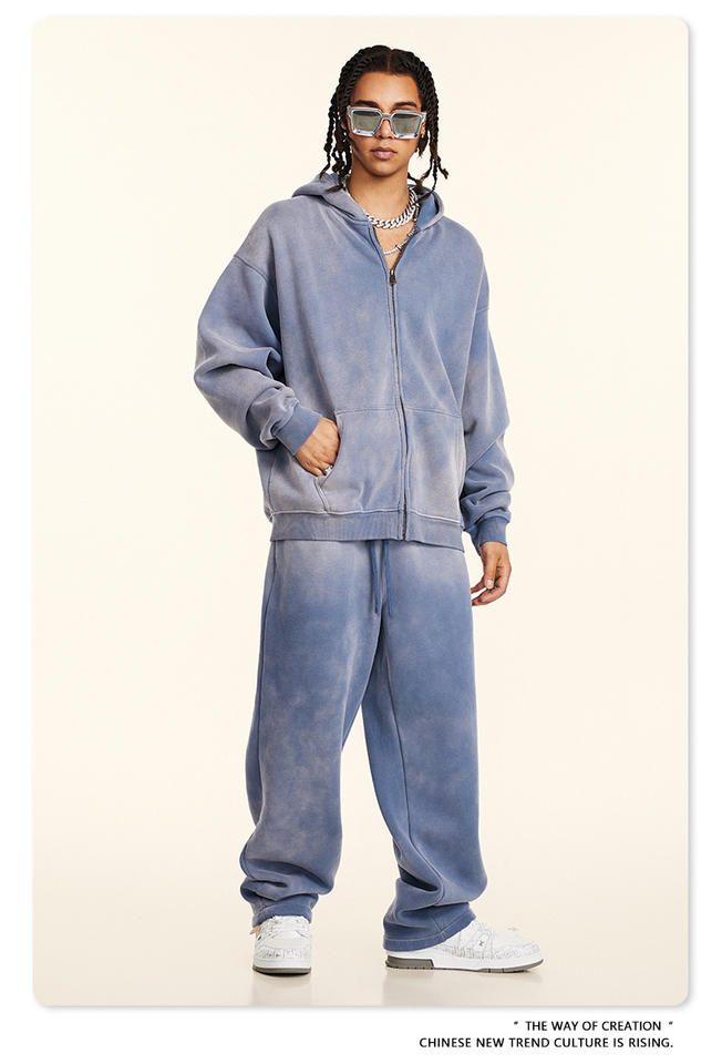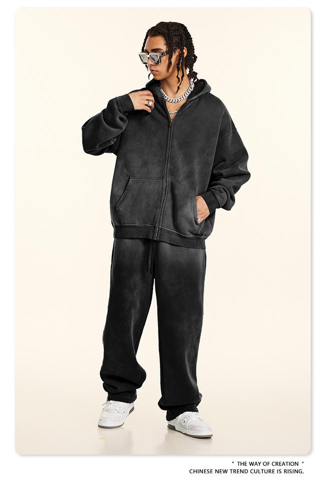 W2427 XIYU Men's Trendy Brand 360G Thermal Cardigan Jacket Set Fleece-Lined Hooded Sweater Straight Casual Pants Winter