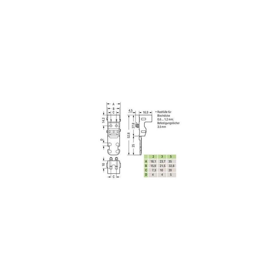 WAGO MOUNTING CARRIER - FOR 5-CONDUCTOR TERMINAL BLOCKS - 221 SERIES - 4 mm² - WITH SNAP-IN MOUNTING FOOT FOR HORIZONTAL MOUNTIN