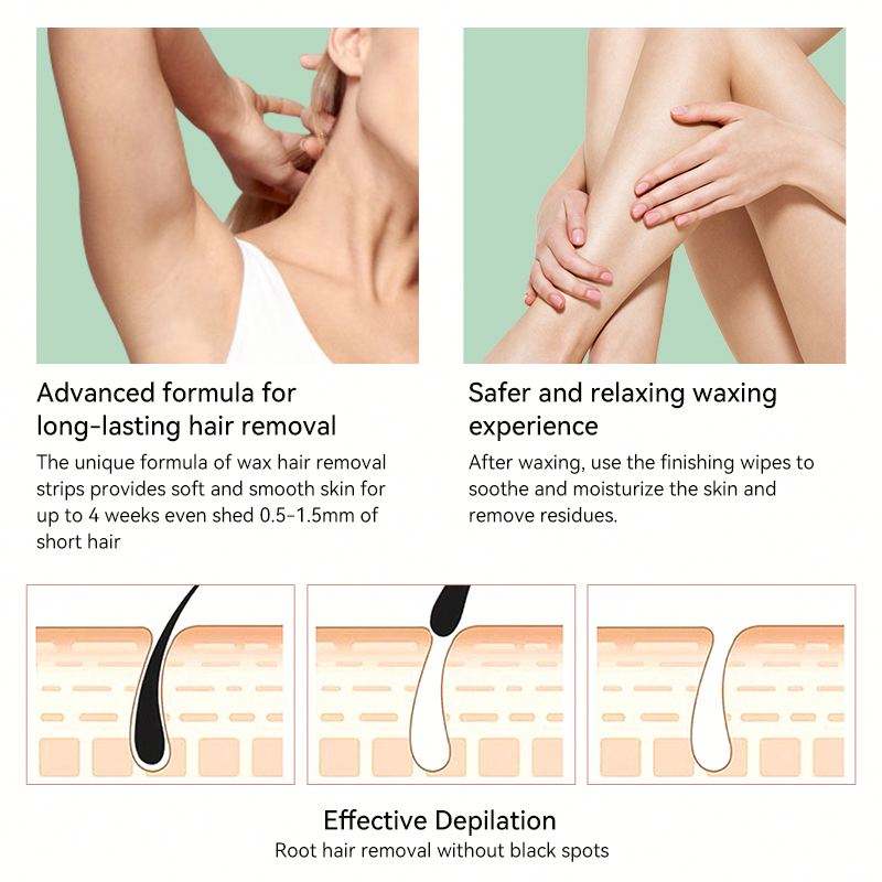 WAXKISS Wholesale Ready-To-Use Cold Wax Strips Body Wax Strip Kit for Leg Hair Removal