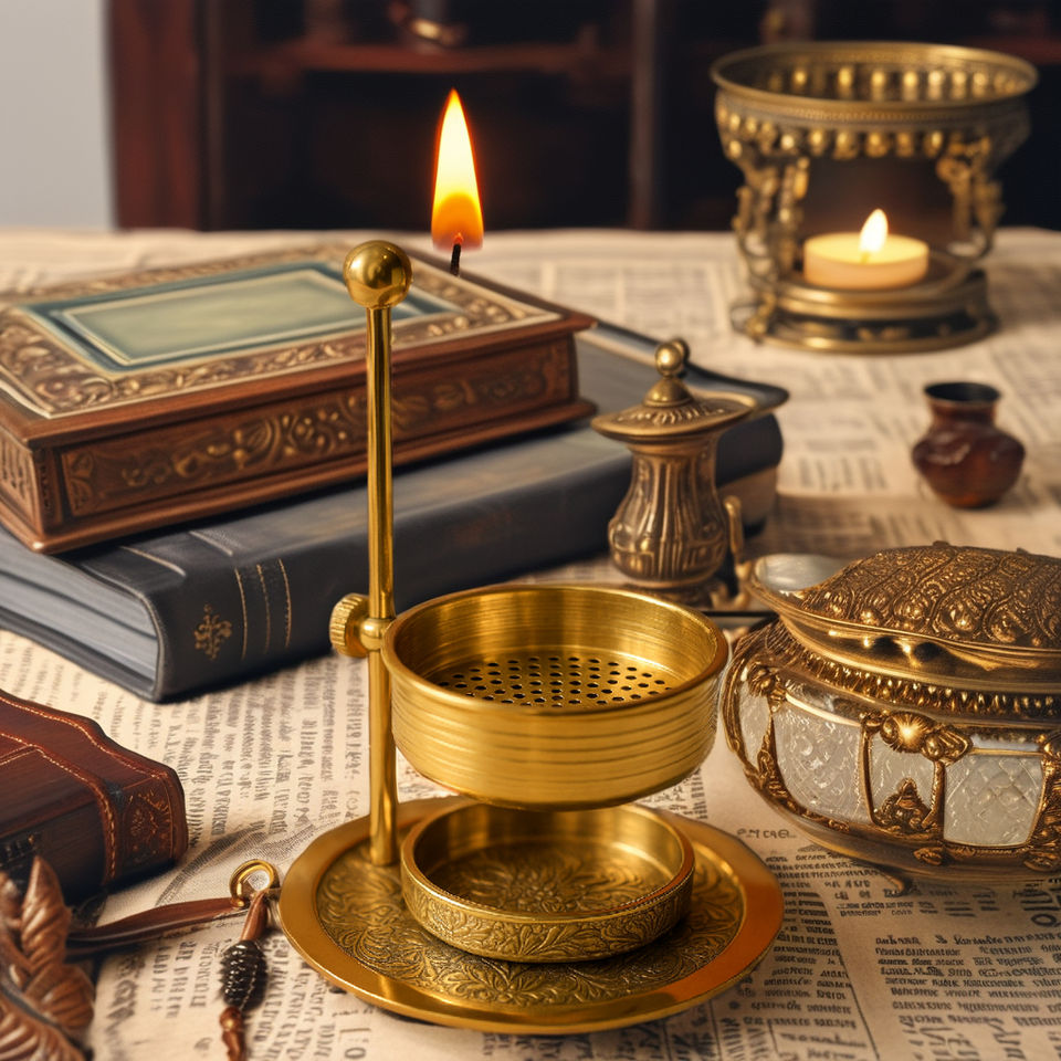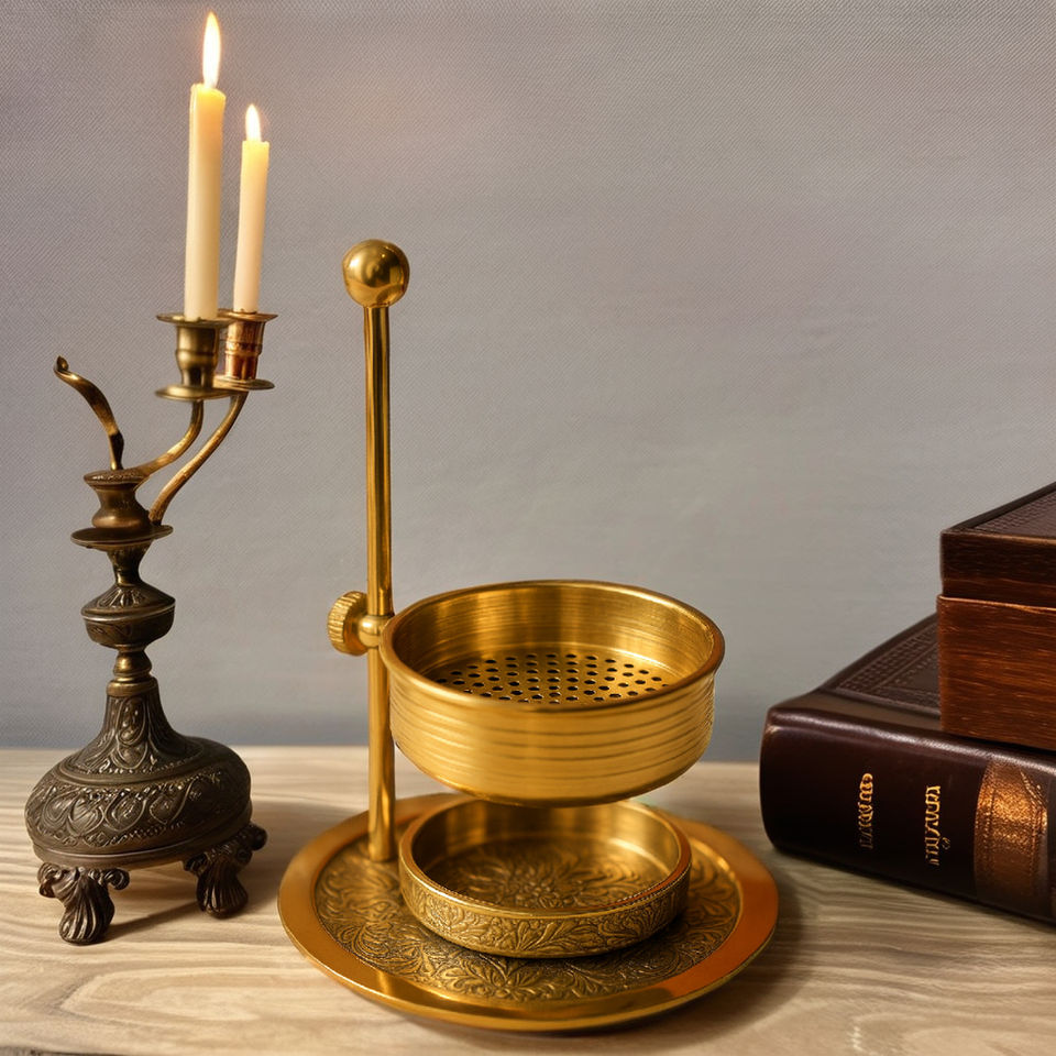 WB INC INDIA Antique Brass Bakhoor Burner Adjustable with Floral Base for Smokeless Pure Incense Fragrance