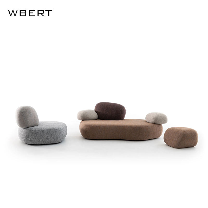 WBERT Customizable Creative Pebble Fabric Sofa Set Italian Minimal Style for Living Room Apartment Villa & Hotel Use
