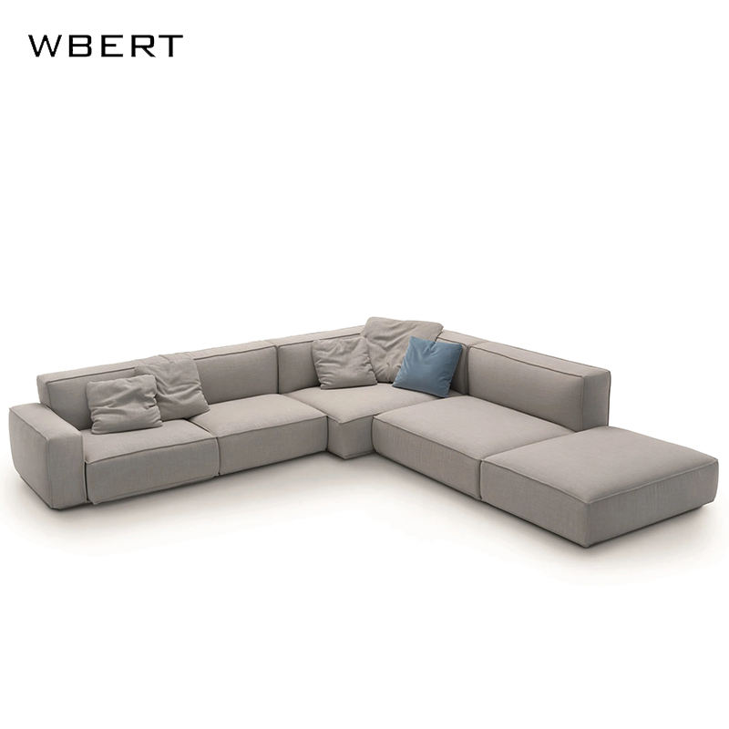 WBERT Italian High Quality Modern Tofu Block Fabric Sofa Set Special-Shaped Corner for Villa Living Room or Hotel Furniture