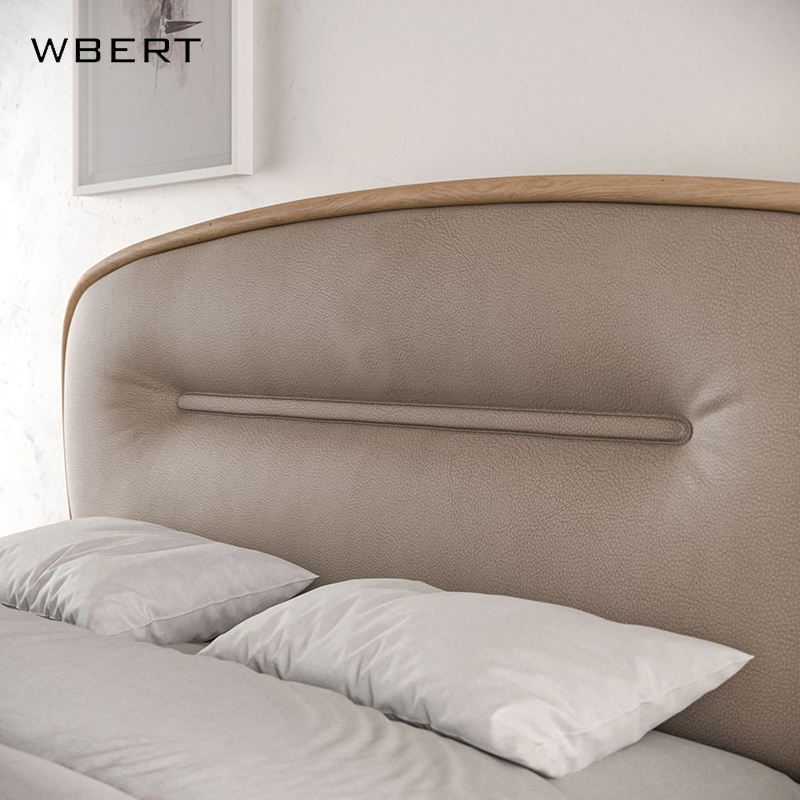 WBERT Italian Luxury Double Beds Modern Creative High Backrest Soft Bag Leather Solid Wooden Frame Up-Holstered for
