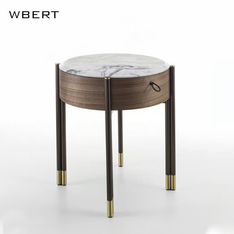 WBERT Italian Minimalist Modern round Wooden Bedside Cabinet for Hotel Guesthouse Villa Bedroom & Home Living Room Furniture